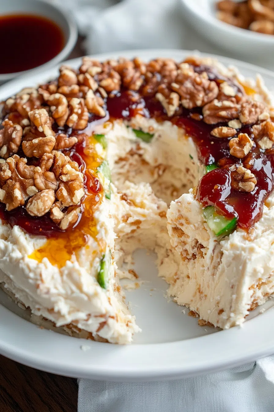 It works for both. That’s the beauty of this cheese ring. It’s got this salty, creamy base, a little tang from the sour cream, melty cheese goodness, crunchy pecans, and then—bam—pepper jelly. That little bit of sweet heat takes it from “okay, cool” to “wait, who made this and can they marry me?”