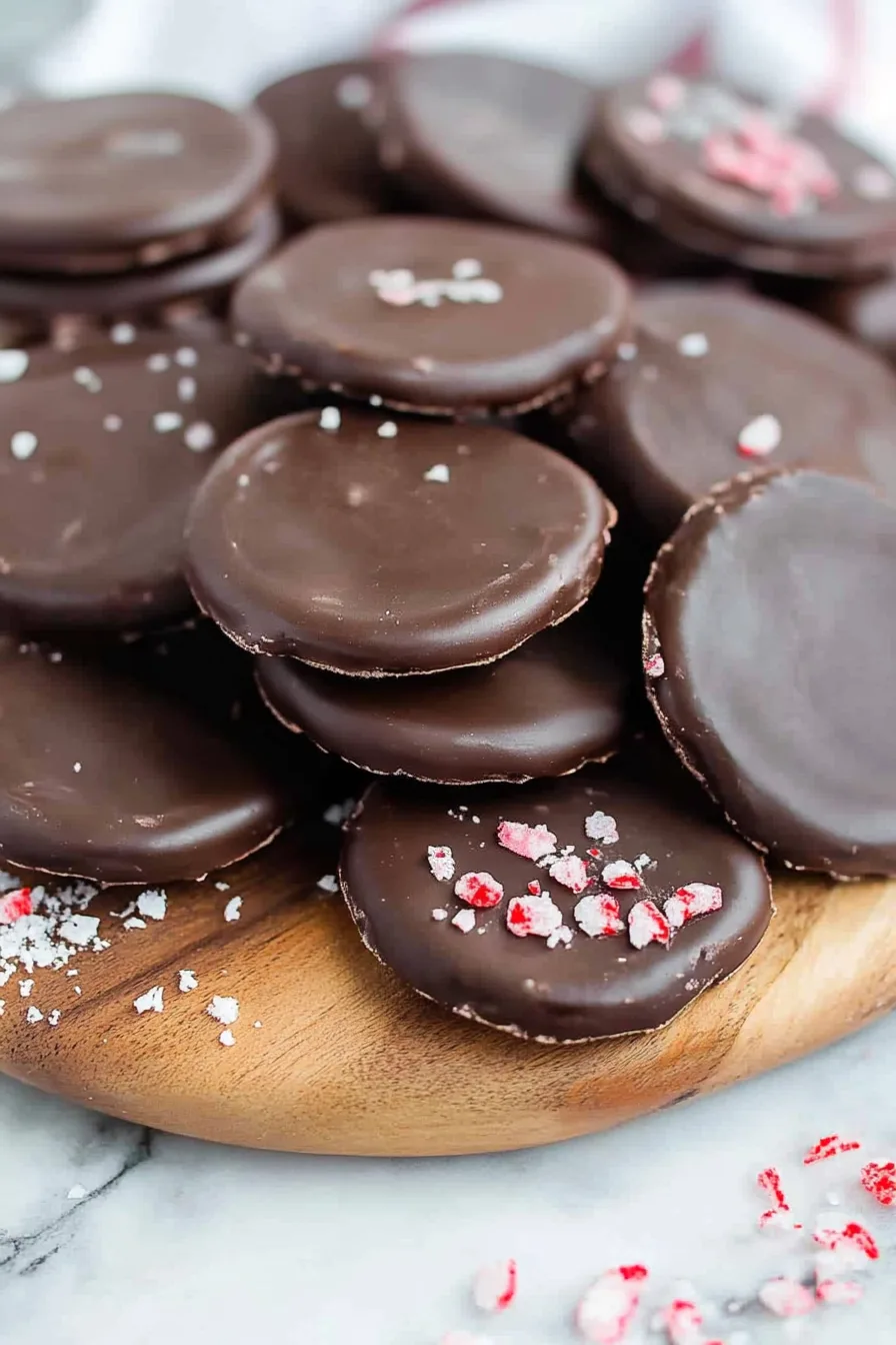This part feels like arts and crafts. Dip each peppermint patty using a fork so the chocolate drips off evenly (or unevenly — again, no stress). Slide the patties onto waxed paper and chill until firm. And suddenly… they’re gorgeous. Even the ones that look a little goofy.