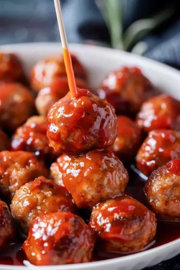 Once your sauce is smooth and bubbling, go ahead and add the pre-cooked meatballs. Give them a good stir so they’re all coated in that sweet and tangy sauce. Let it simmer for about 10 minutes, just until the meatballs are heated through and the sauce thickens a bit. And that’s it! Serve them warm, and trust me, they’ll be gone before you know it.