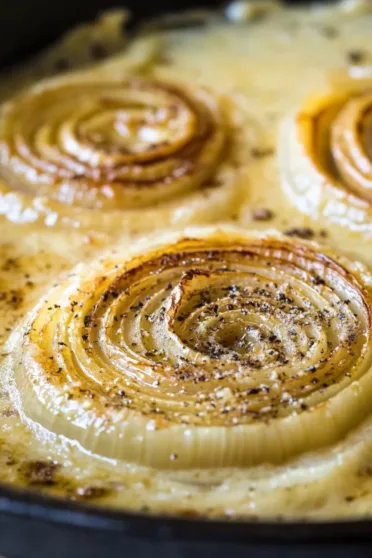 Pour the cream sauce evenly over the roasted onions, making sure every ring gets some love. Sprinkle a generous handful of Parmesan cheese on top (don’t skimp here—it’s the star of the show). Cover the dish with foil, crank the oven up to 450°F, and bake for 20 minutes.
