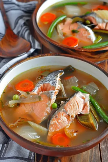 - Ladle the hot salmon sinigang into bowls and serve immediately with steamed rice for a complete meal.