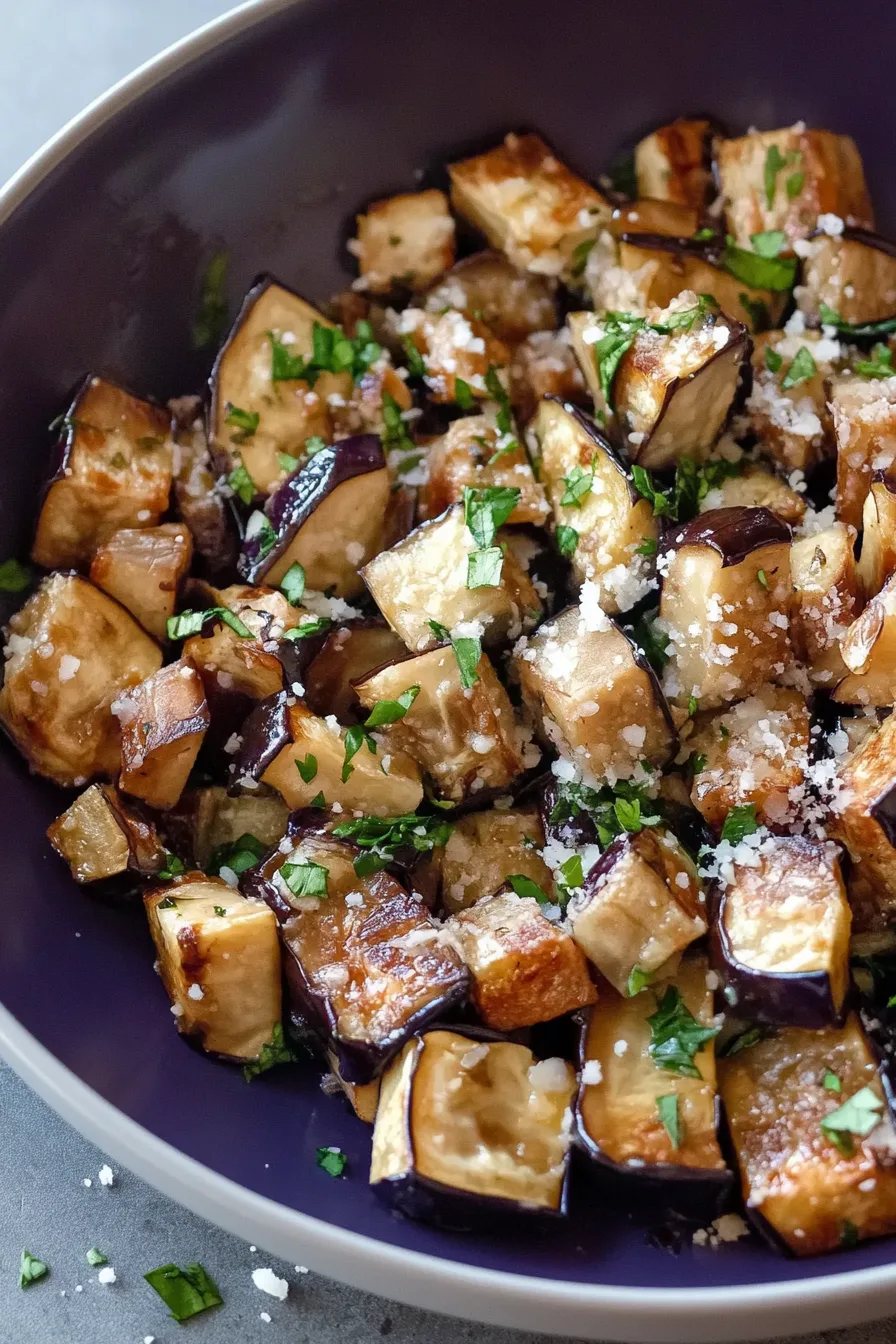 Tender sautéed eggplant cooked with garlic, olive oil, Parmesan, fresh herbs, and mild chili pepper. Simple ingredients, big flavor.