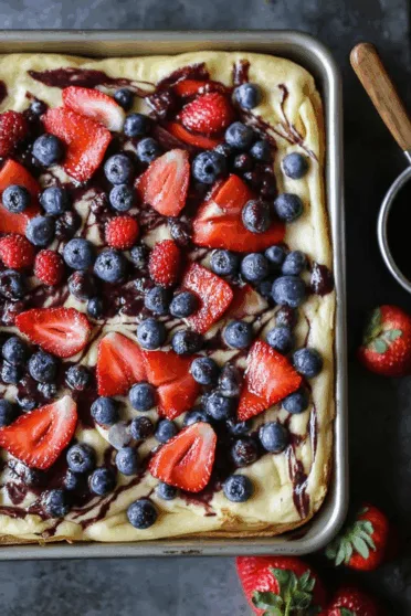 These sheet pan pancakes are made with flour, milk, eggs, butter, and your favorite toppings—perfect for feeding a crowd without flipping a single one.