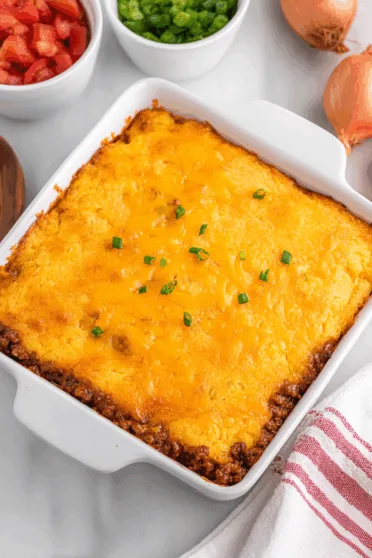 So here’s the scene: It’s Tuesday. I’m tired, the fridge looks like a crime scene, and dinner? Yeah, dinner’s not happening… until I spot a pound of ground beef and two sad boxes of Jiffy mix shoved in the back of the pantry next to a can of expired olives (why do I still have those?).