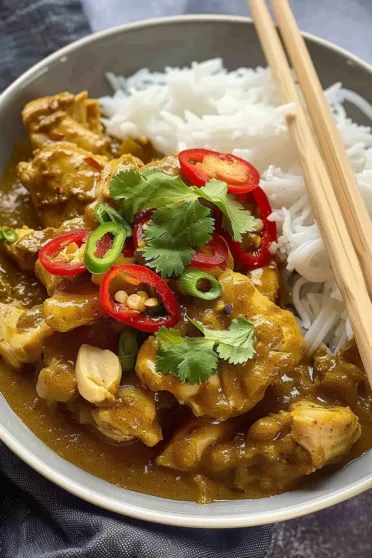 Four hours later, my kitchen smelled like some tiny corner of Thailand. The sauce was creamy, spicy, a little sweet—everything you want in a comfort meal. My husband? He scraped his plate clean and went back for seconds. Safe to say, it was a win.