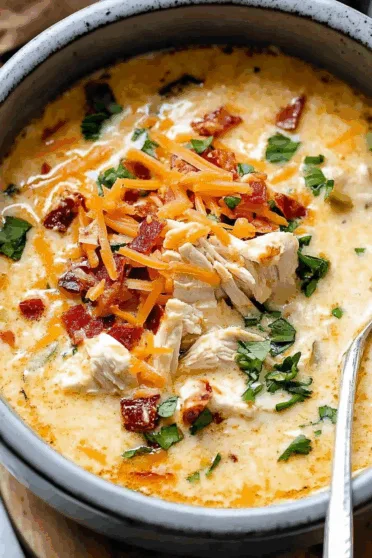 This Slow Cooker Crack Chicken Potato Soup is the ultimate comfort food—cheesy, creamy, and packed with tender chicken, crispy bacon, and hash browns!