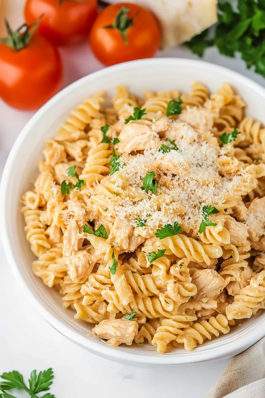 Slow Cooker Garlic Parmesan Chicken Pasta