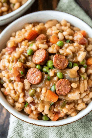 - Smoked Sausage – Brings that deep, savory, slightly crispy bite. Browning it first? Totally worth it.