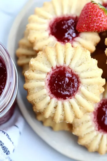 Strawberry Jam: If you prefer a firmer consistency for the jam. You can reduce it on the stove. With a little cornstarch. It prevents the jam. From running out of the cookies. Making them even prettier. And easier to eat.