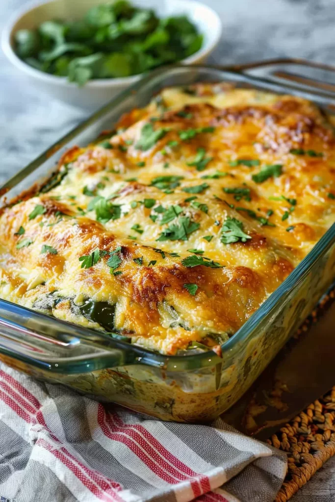 So, the first time I made this Chile Rellenos Casserole, I wasn’t actually planning on it. It was one of those nights where you open the fridge, and it feels like a sad, barren wasteland. You know, that moment when you’re like, “How have I spent so much on groceries, but have nothing to cook?” Anyway, I found a couple of cans of green chiles I’d forgotten about, and my mind immediately jumped to my grandmother’s chile rellenos—except, let’s be real, I wasn’t about to go through the whole stuffing and frying process on a weeknight.