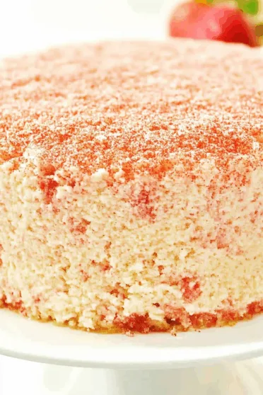 It reminded me of those strawberry shortcake ice cream bars from middle school. You know the ones they sold at every baseball game, wrapped in that red-and-white paper that always stuck to the side a little? I used to lick off the bits like a gremlin. Anyway, this cheesecake? It kinda tastes like that, but like… grown up. Creamier. Tangier. A little more chaotic. My sister literally teared up on the first bite. Said it “tasted like summer before everything got complicated.”