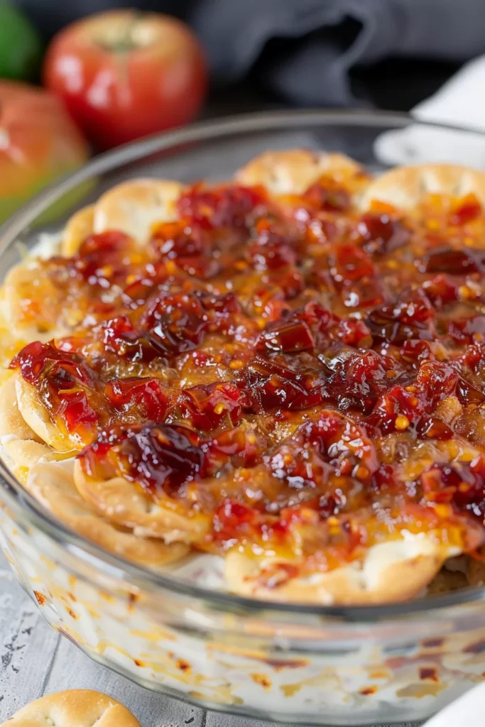 Pepper Jelly: This is the game-changer! The sweet and spicy kick from the pepper jelly takes this dip to another level. It’s the perfect contrast to the cheese and crackers, making each bite so much more interesting.