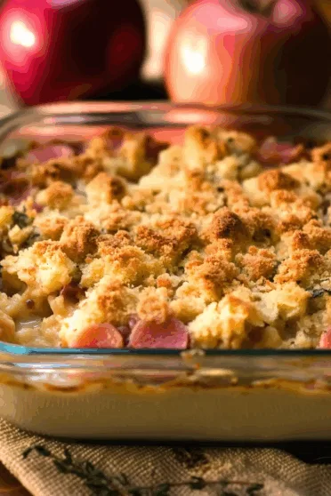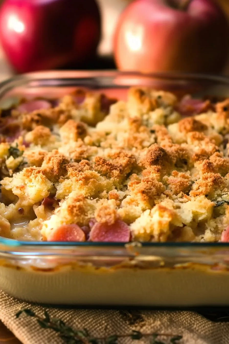 Chicken broth – Keeps the stuffing topping moist enough to crisp instead of turning into a brick.