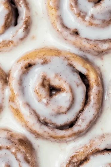 - Spread or spoon the cream cheese frosting generously over the warm cinnamon rolls. Serve immediately and enjoy.