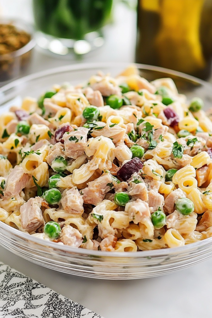 It was one of those sticky hot days where turning on the stove felt like a crime against humanity. I’d already vetoed grilled cheese (too heavy), and salad-salad felt way too sad. Then I remembered this Tuna Pasta Salad from when I was a kid—cold, creamy, and somehow the only thing I’d eat that had peas in it. My mom would pack it in those old Tupperware containers that always had mystery lids, and we’d eat it straight out of the cooler at the park.