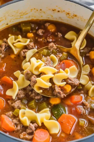 I started rummaging around the pantry, desperate for inspiration, and found a can of stewed tomatoes, some beef broth, and a lonely bag of egg noodles. I had a pound of ground beef in the fridge and thought, Okay, let’s see what happens. What came out of that pot was pure magic. The kind of soup that makes you feel like you’ve got your life together (even if you were just panicking 20 minutes ago).