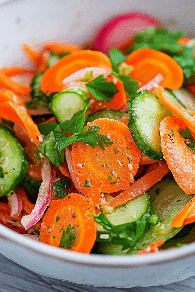 I used to roll my eyes at people who said they “crave salad.” But this one? This Zesty Cucumber Carrot Salad? It surprised me. It’s honest, refreshing, and takes just enough effort to feel like you did something without requiring a grocery list or a YouTube tutorial.